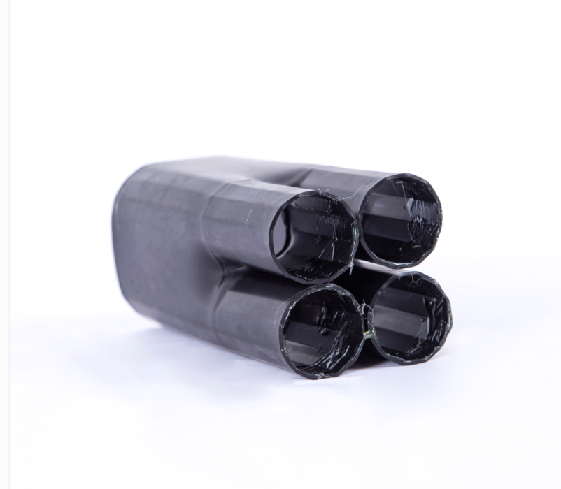 產品特點:采用交聯聚烯烴材料和熱熔膠復合而成,套在多芯電纜線芯分支處,加熱即收縮,內壁的熱熔膠會將電纜緊緊粘住,起到防水防潮密封保護作用,外層的輻射交聯聚烯烴材料可起到電氣絕緣防護作用。